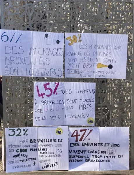 Dans l’espace public, chiffres, phrase-clés et témoignages à l’appui, retrouvez-nous pour échanger collectivement autour de la santé et du logement. On réfléchira entre autres à comment on pourrait faire changer les choses !