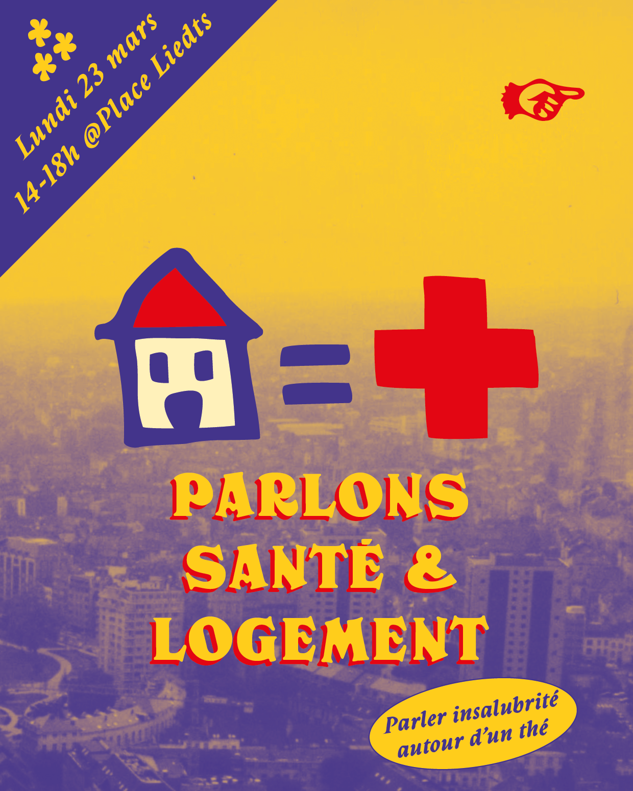 Dans l’espace public, chiffres, phrase-clés et témoignages à l’appui, retrouvez-nous pour échanger collectivement autour de la santé et du logement. On réfléchira entre autres à comment on pourrait faire changer les choses !